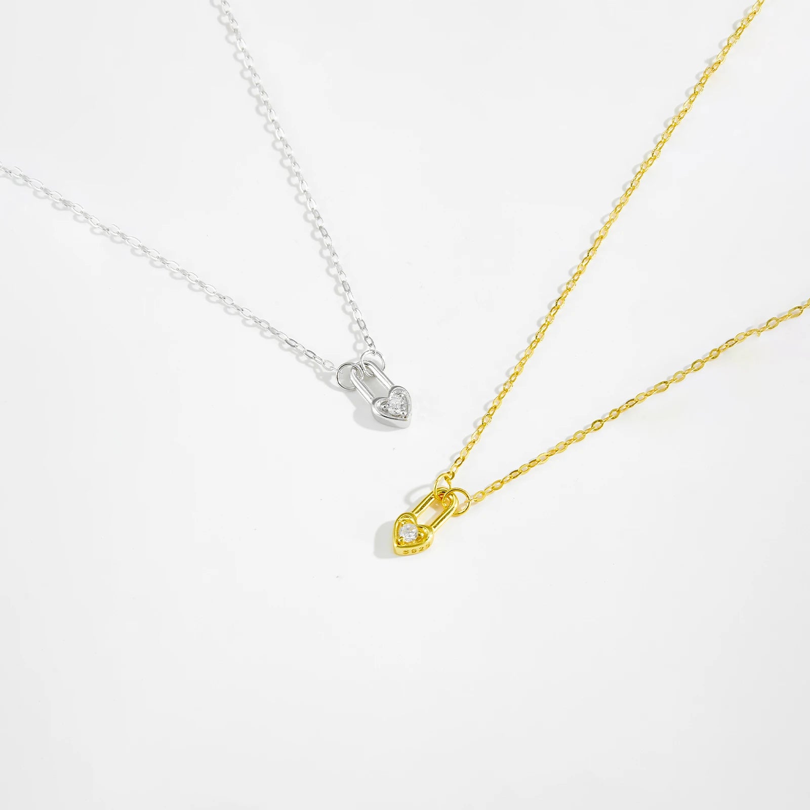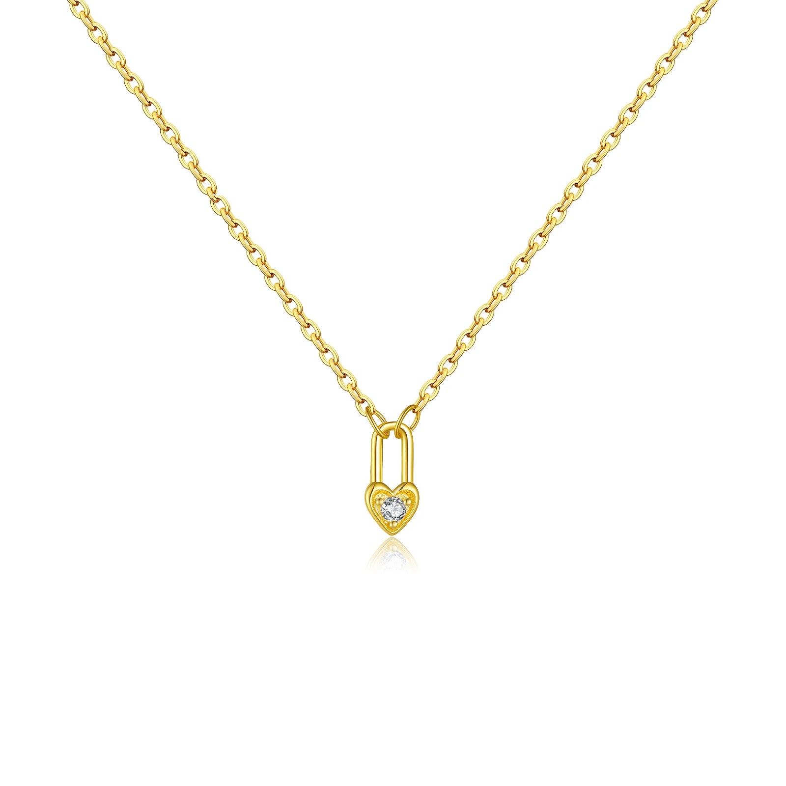 Sterling Silver Heart Padlock Pendant Necklace - 925 Silver