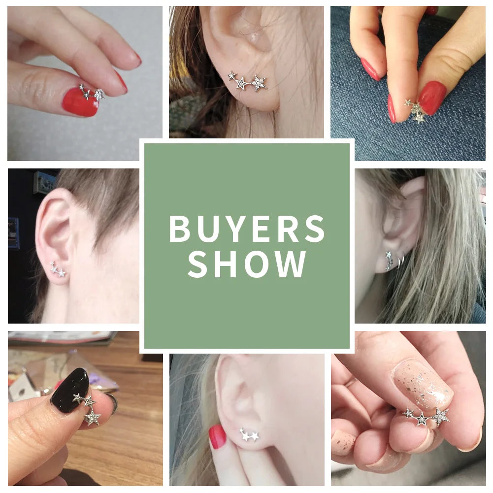Sparkling Star Stud Earrings - 925 Sterling Silver Stackable